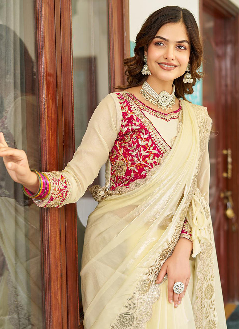 Fendi Silk Party Wear Ready Wear Saree - Floral / Silk / Female