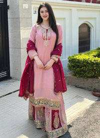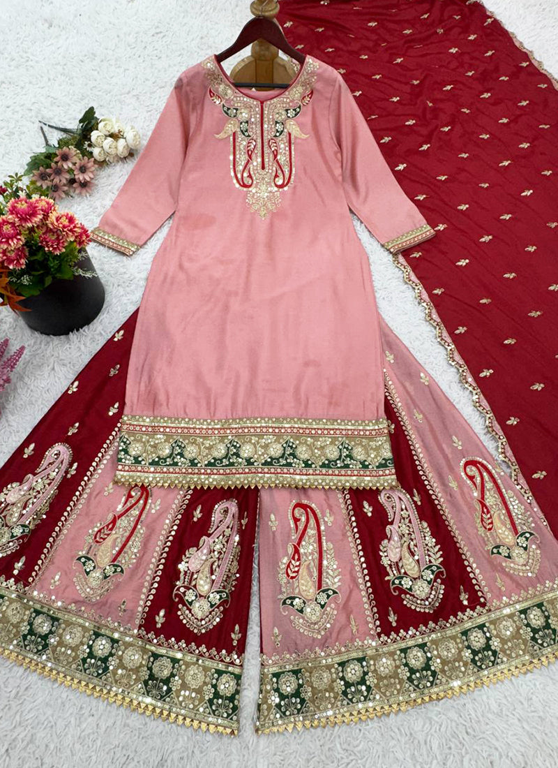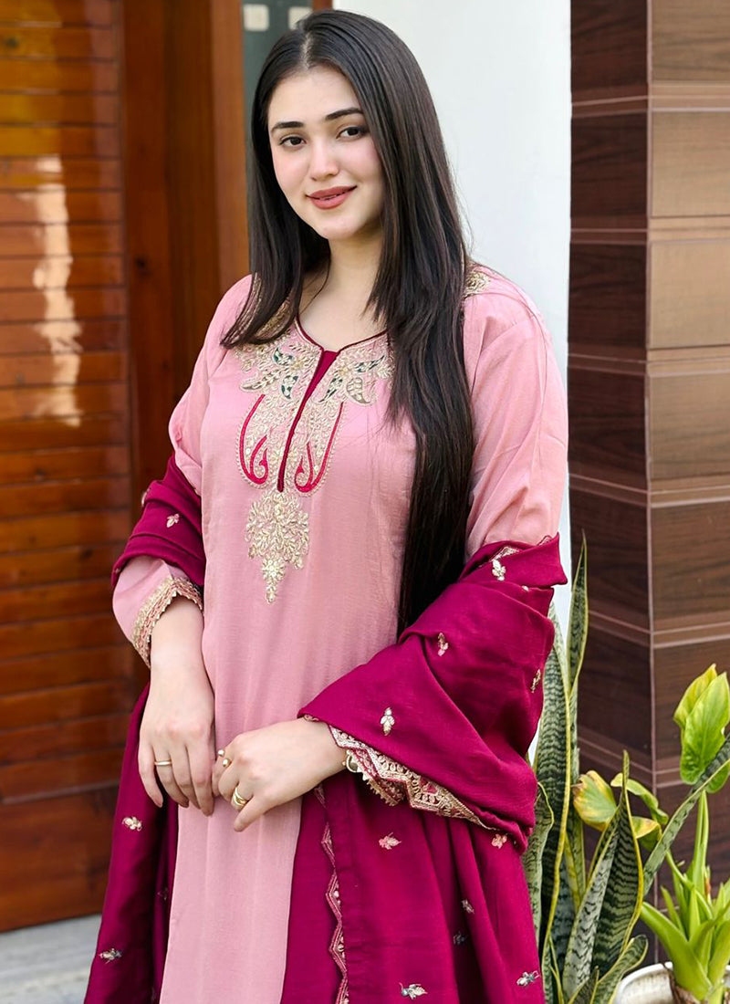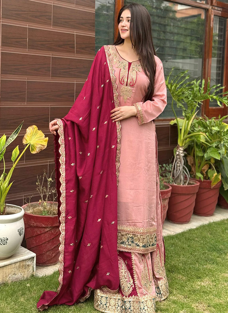 Heavy Chinon Party Wear Readymade Salwar - Pink / M / Female