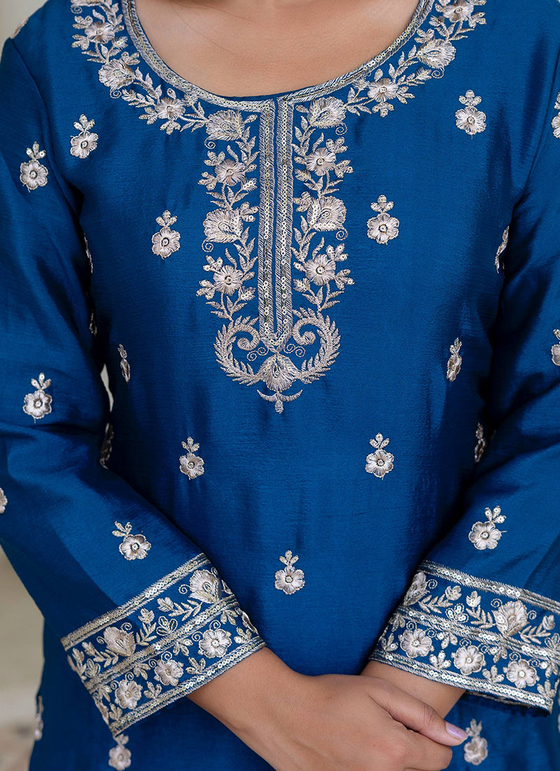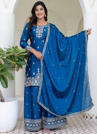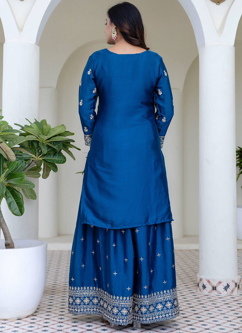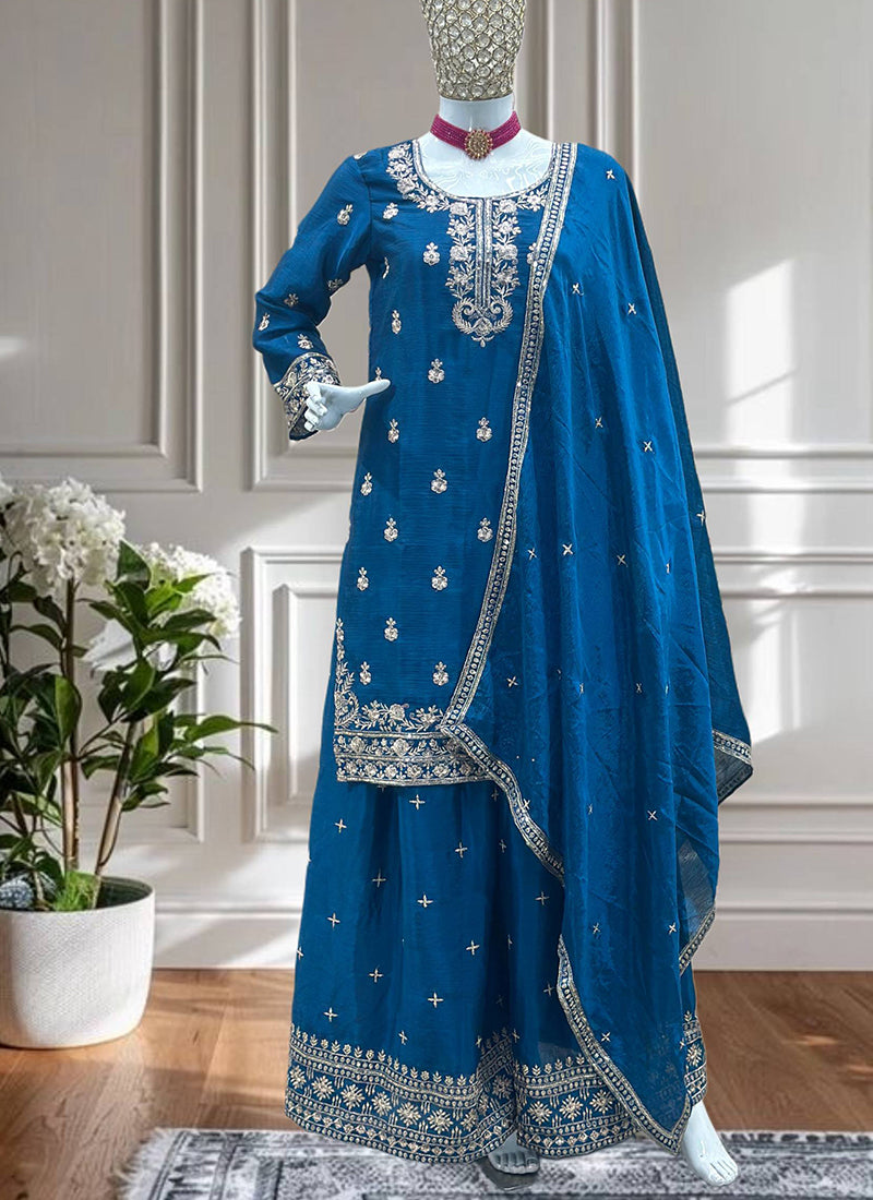 Chinon Wedding Wear Readymade salwar Kameez - Blue / M / Adults