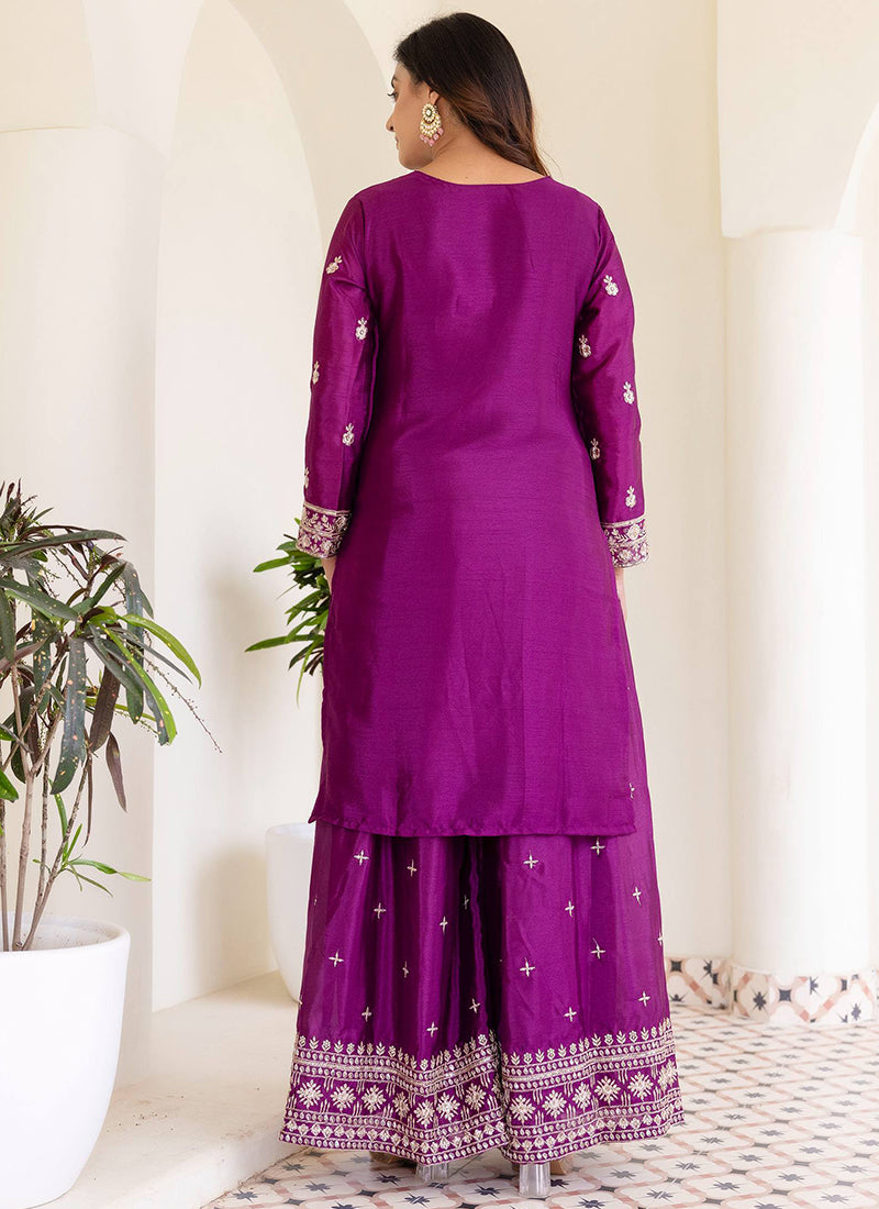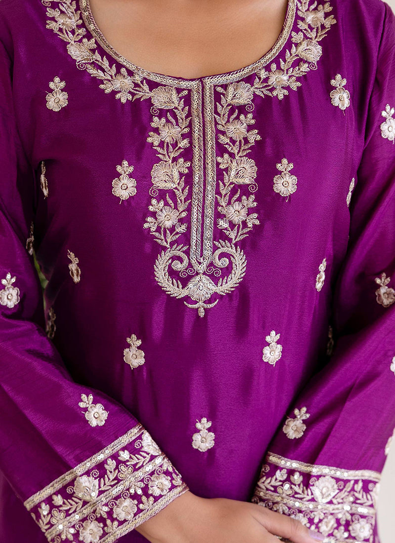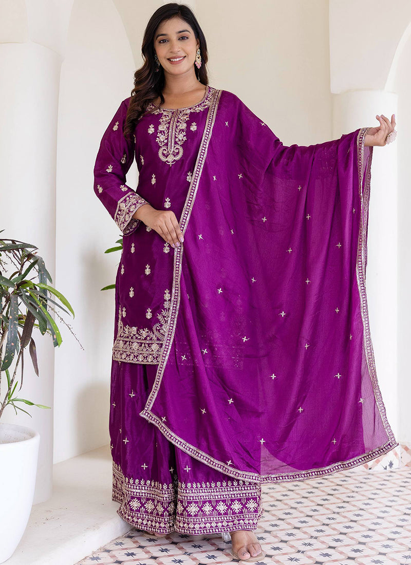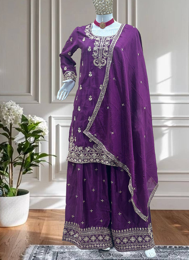 Chinon Wedding Wear Readymade salwar Kameez - Purple / M / Adults