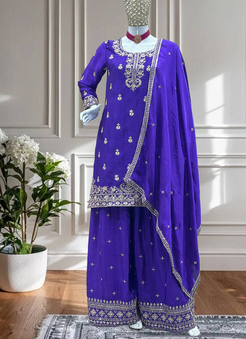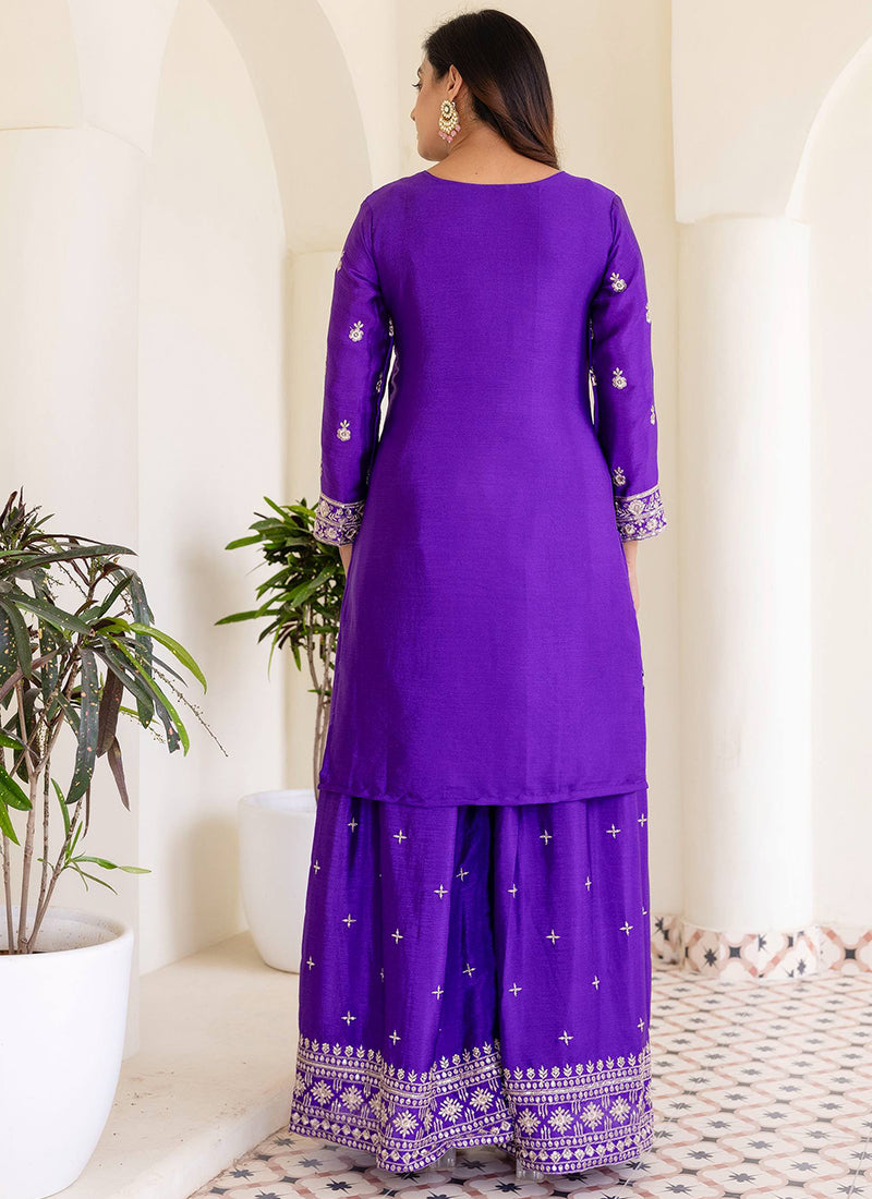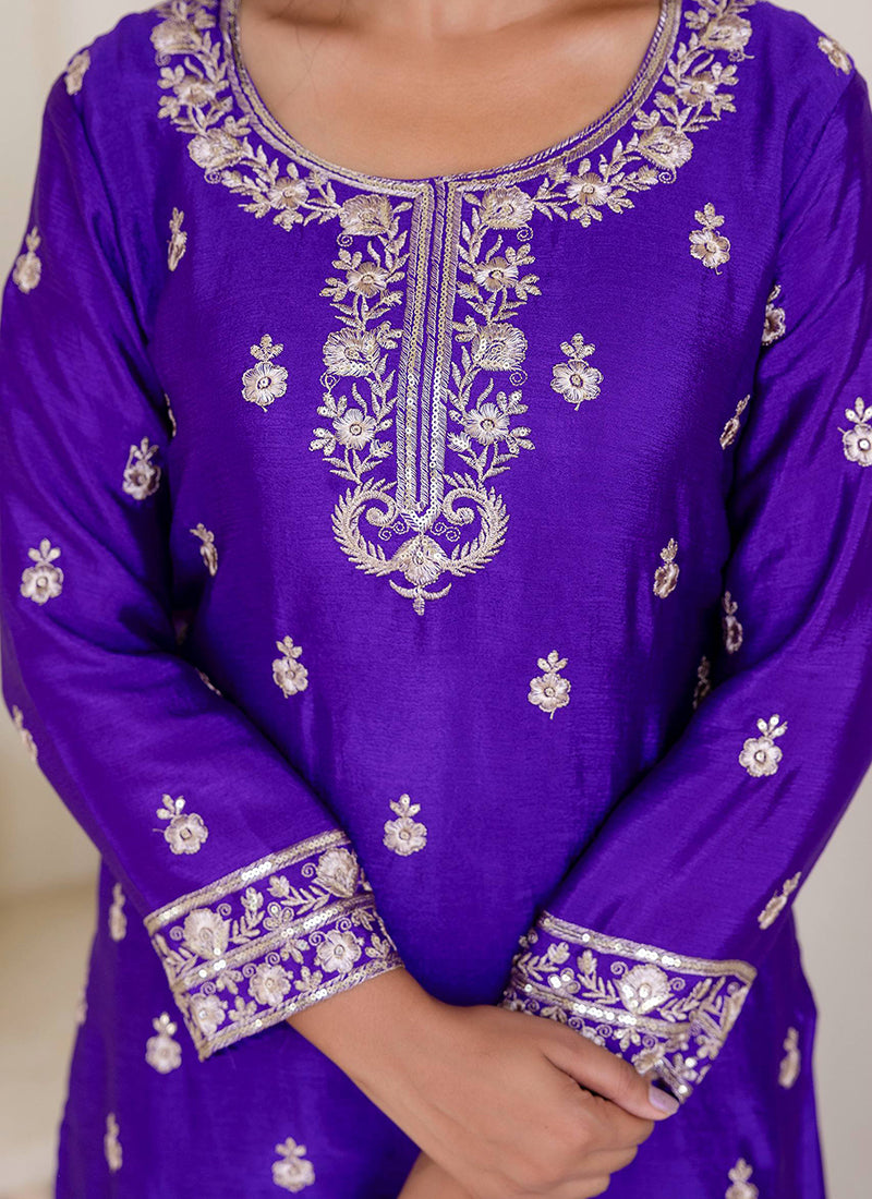 Chinon Wedding Wear Readymade Slawar Kameez - Purple / M / Adults