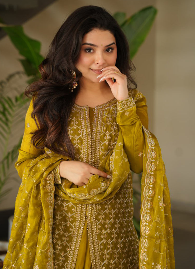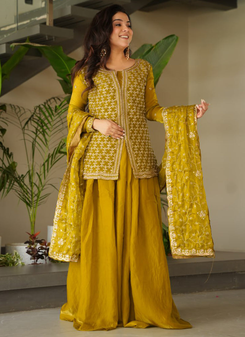 Fendi Party Wear Readymade Salwar - Yellow / M / Cotton