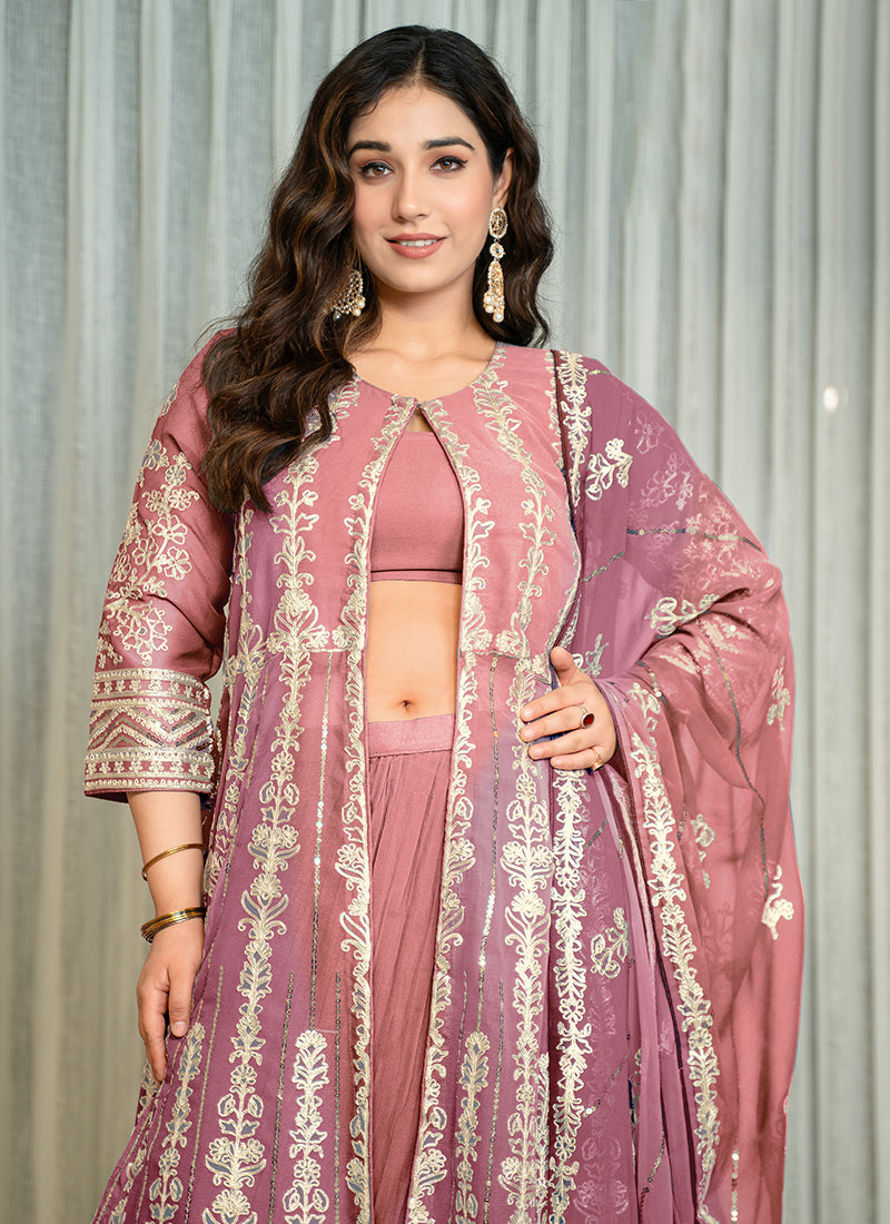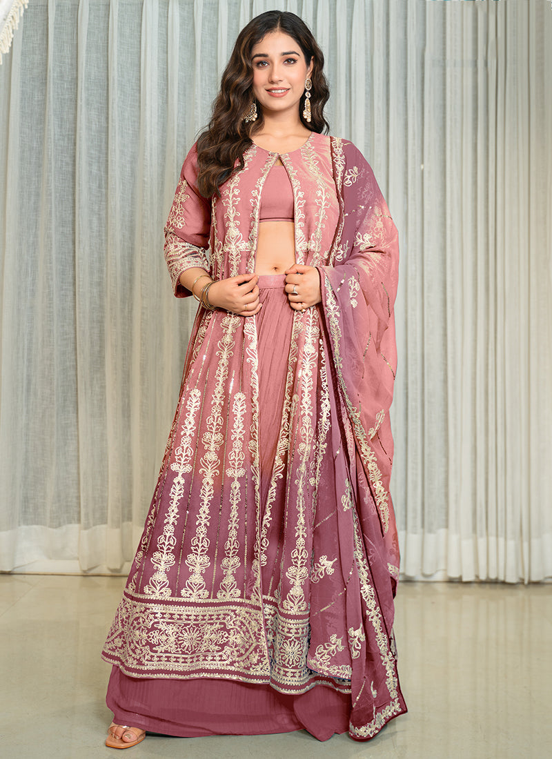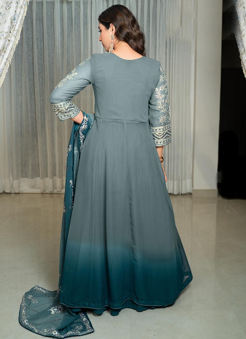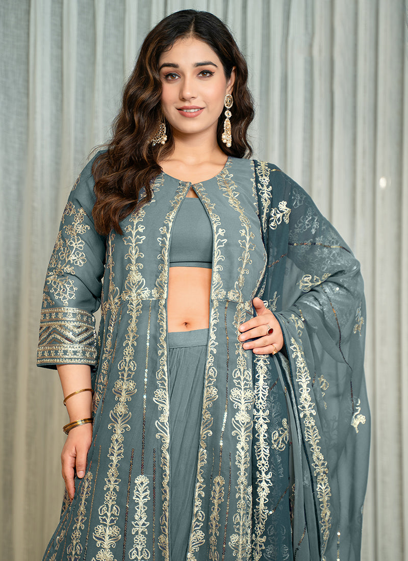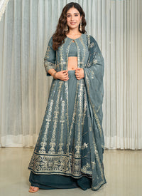 Georgette Party Wear Indowestern Suit - Blue / S / Adults