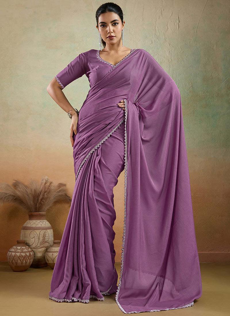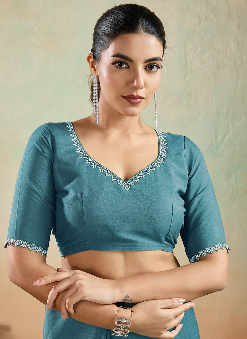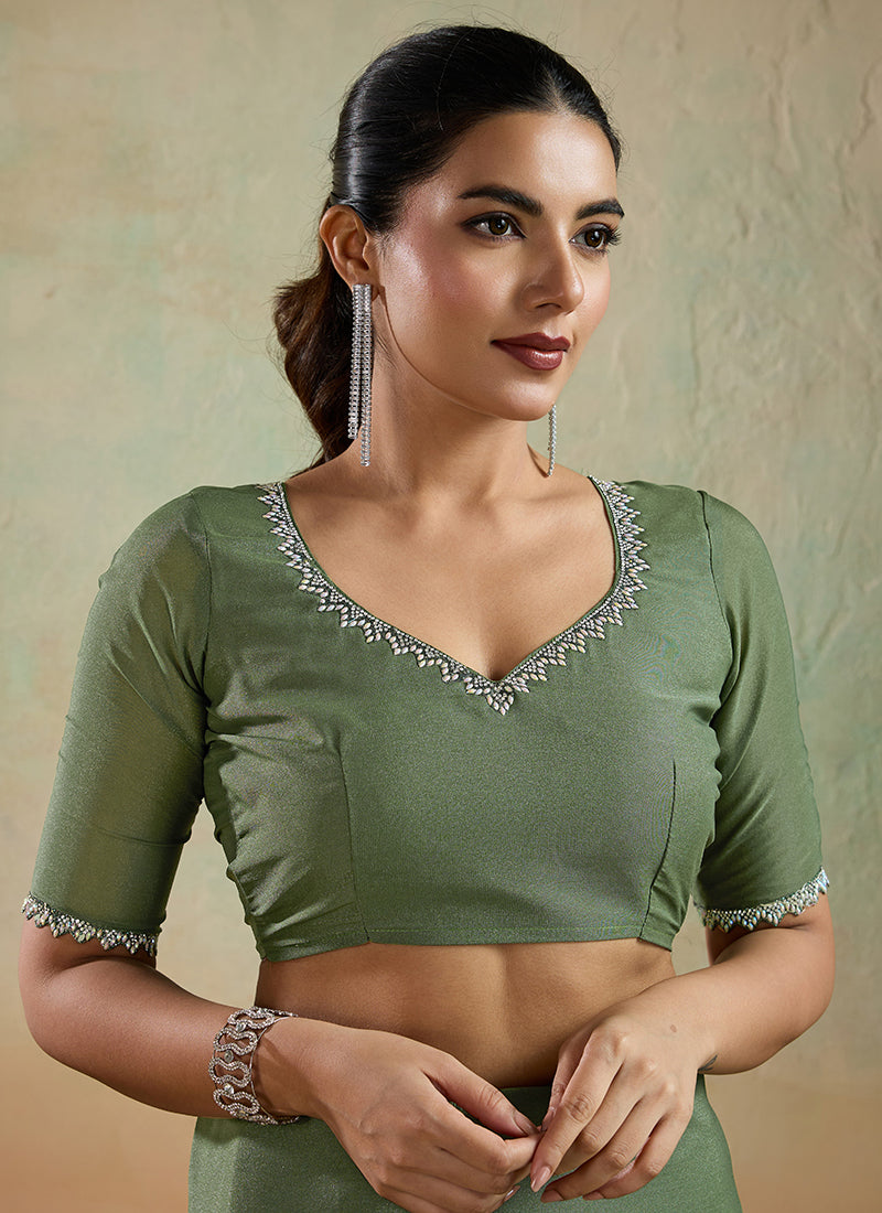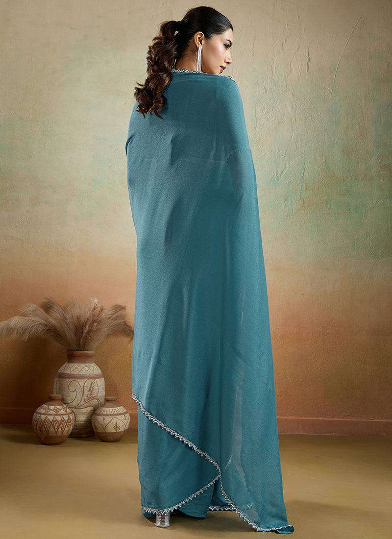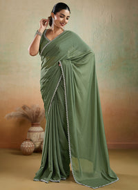 Sage Lace Work Party Wear Saree - Green / One size / Synthetic
