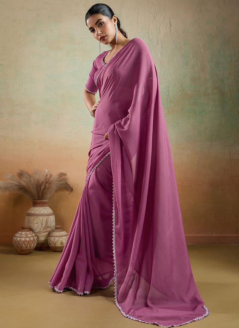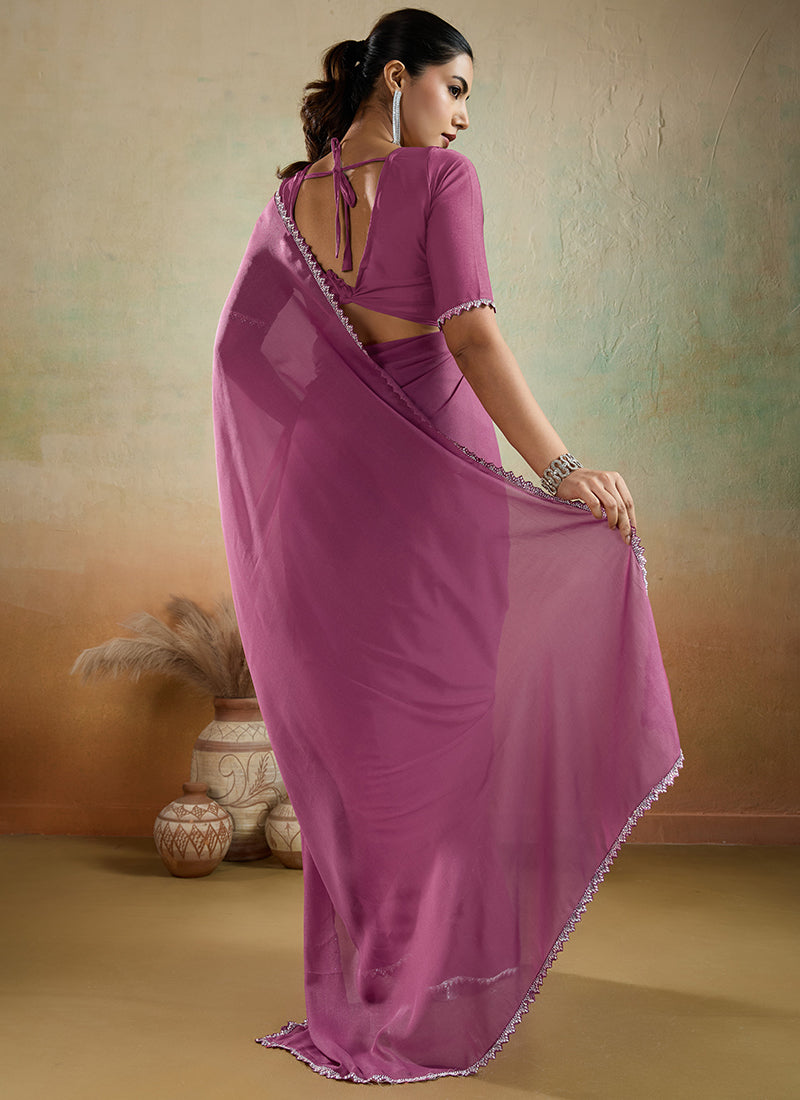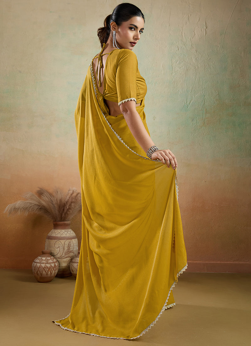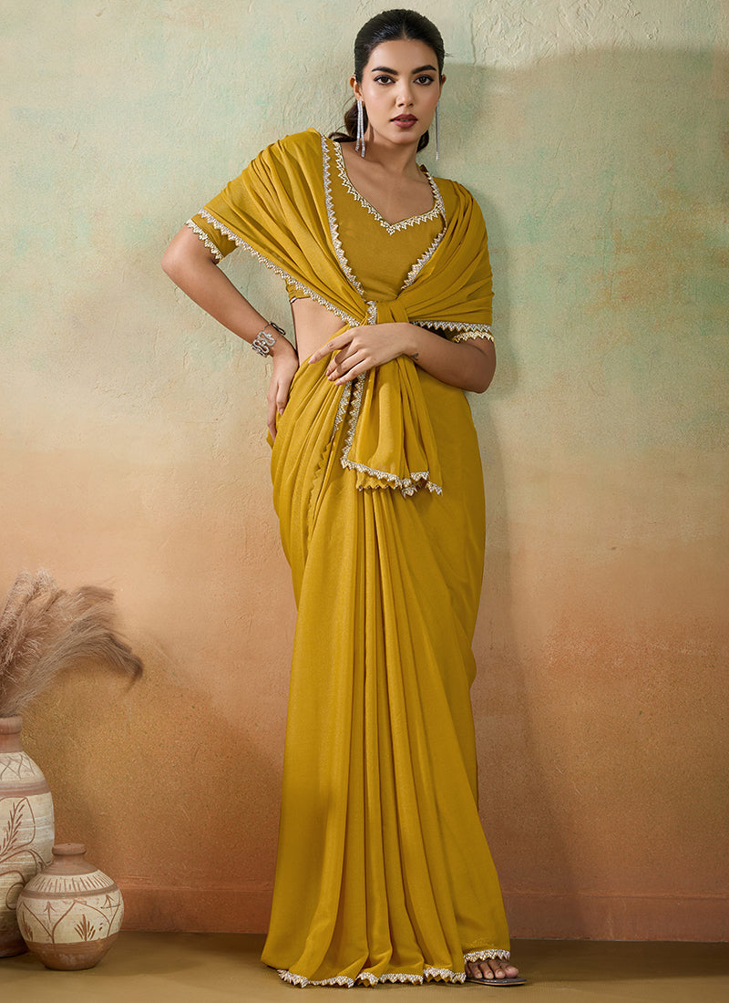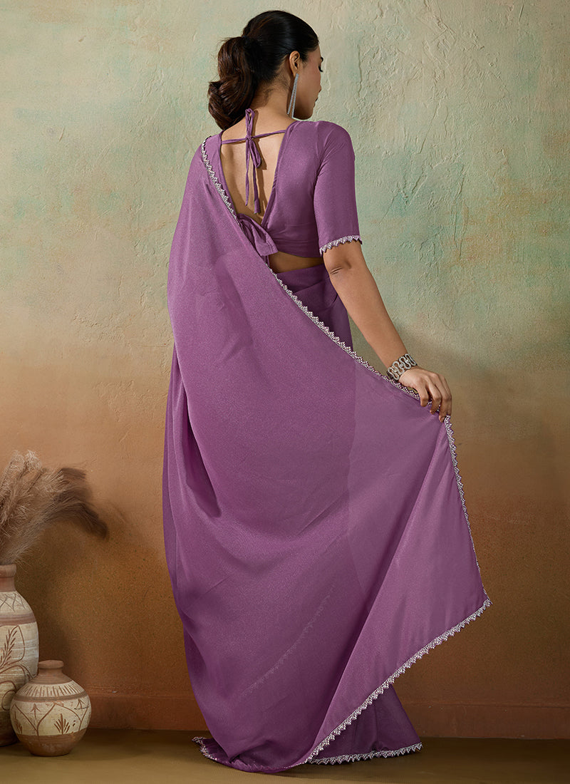 Sage Lace Work Party Wear Saree - Green / One size / Synthetic